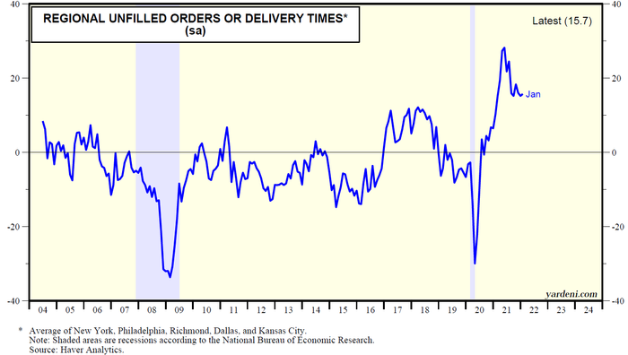 For example, one of the big drivers of inflation is the rise in auto prices, thanks to chip shortages limiting production. But Japan’s auto production rose in November and December, according to Haver Analytics. If Japanese companies can find chips, then others will too. Improved production will bring down soaring used and new car prices, predicts Yardeni.