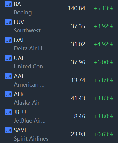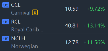 Airline, cruise and bank stocks surged in morning trading. Royal Caribbean Cruises and Norwegian Cruise Line shares jumped more than 10%.