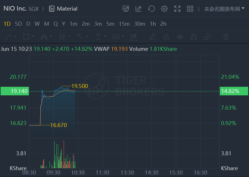 Nio shares surged more than 14% in Singapore and its stock jumped more than 13% in Hong Kong.