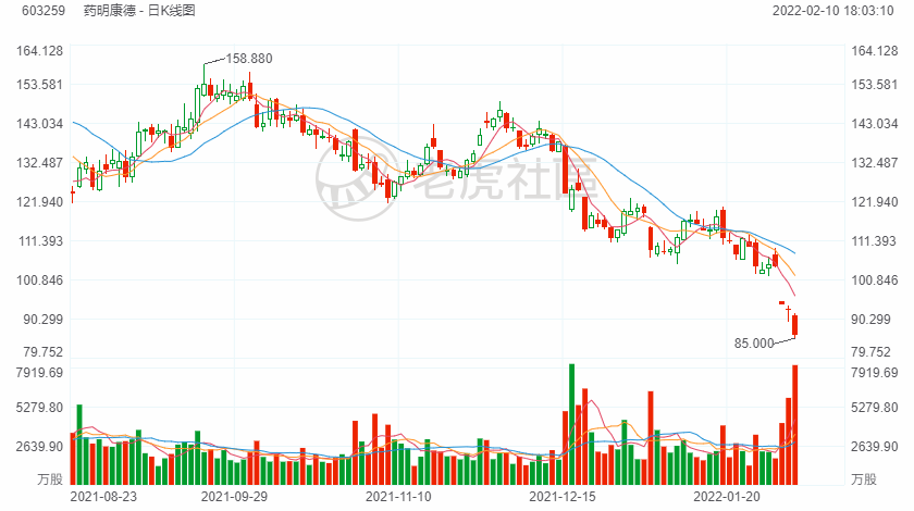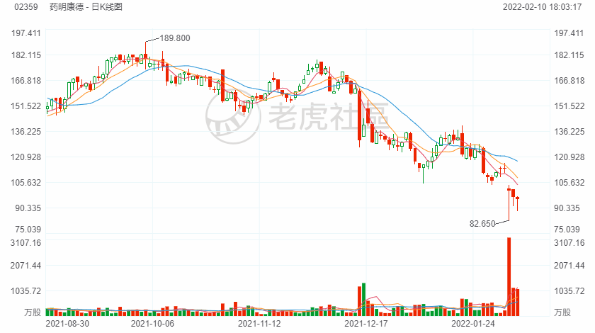 2月10日,药明康德再度大跌7.41%,最近3个交易日,股价累计跌幅达17.84%,此外,公司港股股价3天累跌亦超过15%。