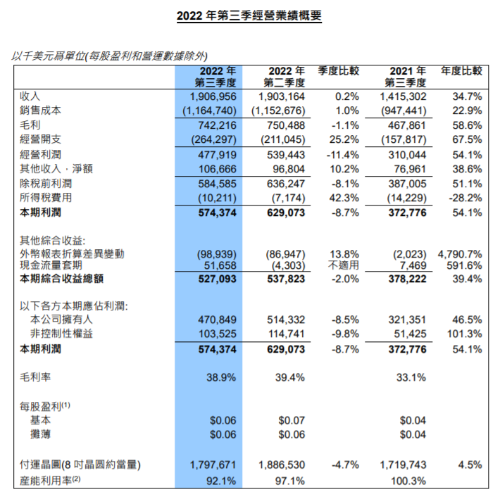中芯国际Q3营收19.07亿美元,净利润4.7亿美元