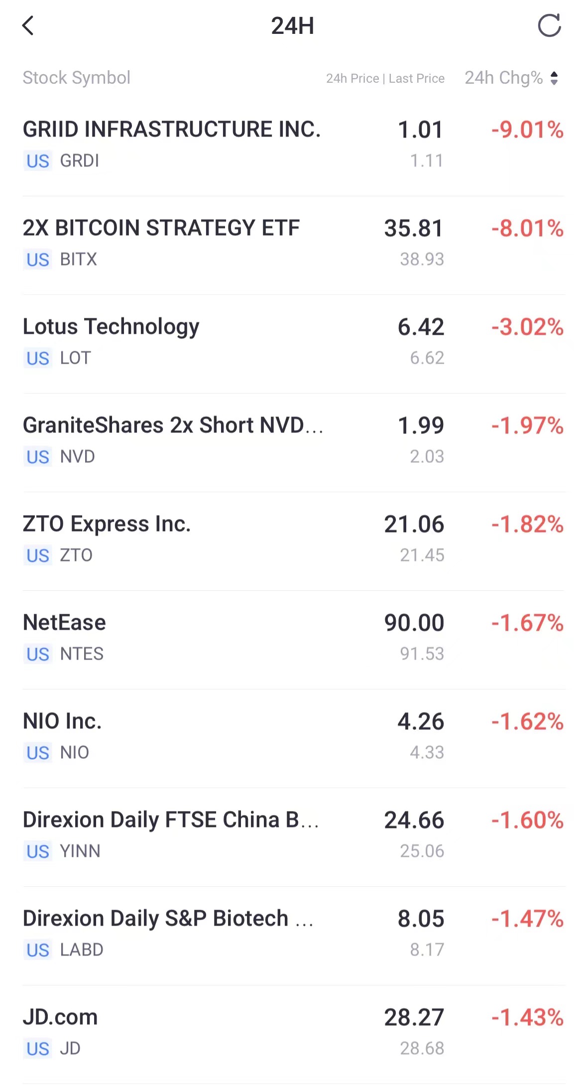 TOP10 decliners in overnight trading: