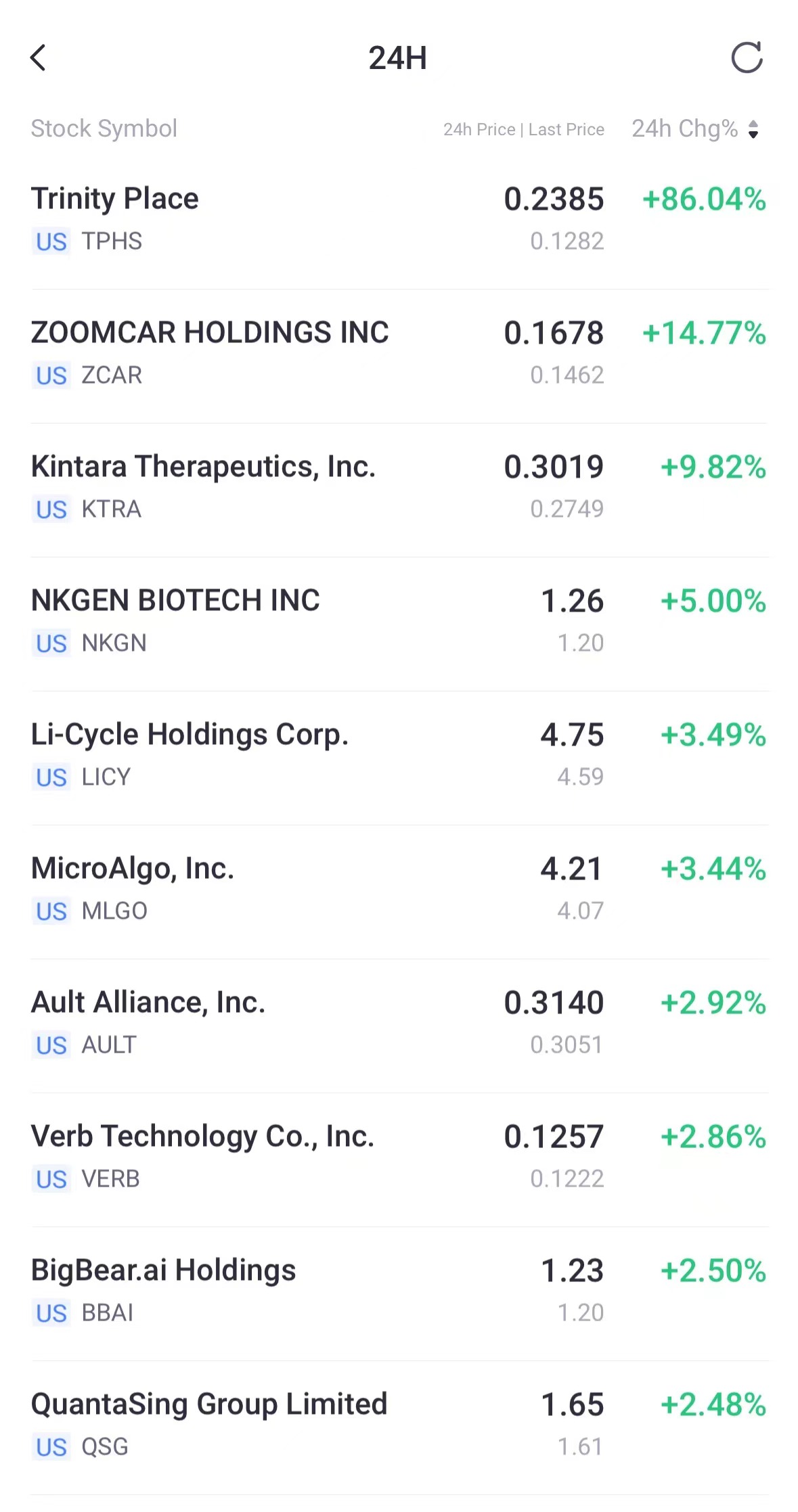 TOP10 gainers in overnight trading:
