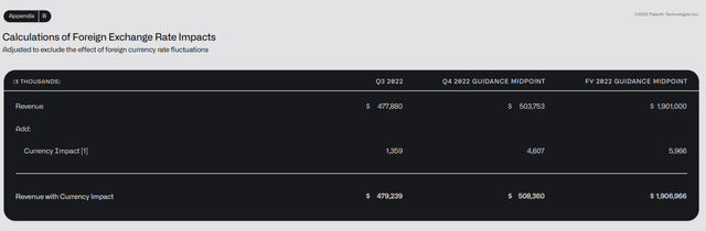 No matter how I look at it, PLTR is growing, even though revenue growth will fall short of PLTR's previous projections. Q3 revenue is up 22% YoY, and the U.S. business is still exploding, as it's up 31% YoY. In Q3 PLTR's total contract value closed at $1.3 billion, while they closed 78 deals worth a minimum of $1 million. Of these 78 deals, 32 were at least worth $5 million, and 19 exceeded $10 million. PLTR ended Q3, having closed 273 deals YTD, which is up 63% YoY from 167 in 2021, which drove its total remaining deal value up 14% YoY to $4.1 billion.