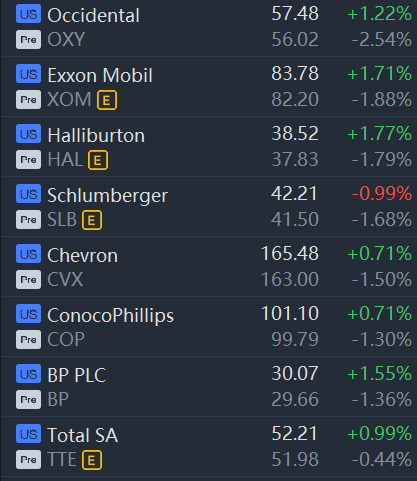 Oil stocks fell in premarket trading as oil prices dived as U.S. weighs record reserves release. Occidental, Exxon Mobil, Halliburton, Schlumberger, Chevron, ConocoPhillips and BP between 1% and 3%.