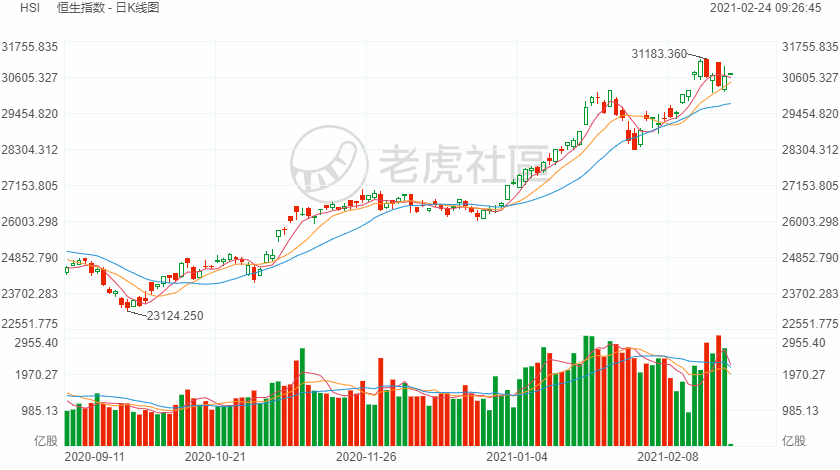 2月24日讯,港股主要指数高开,恒指涨0.23%报30720点,国指涨0.49%报11968点点,恒生科技指数涨0.69%点报9931点。