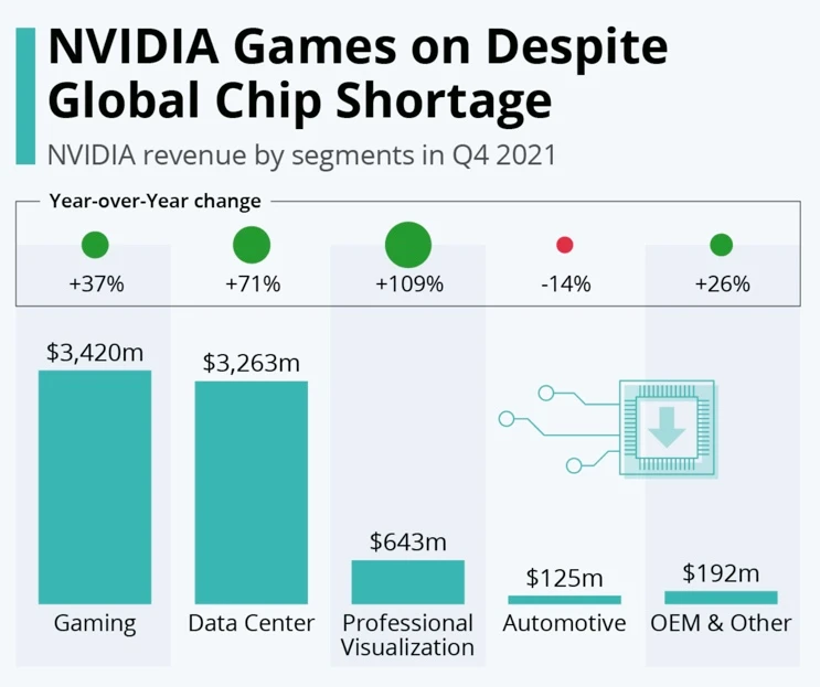 But another big unknown is the sustainability of the gaming market. The U.S. gaming market is in decline so far in 2022, compared to last year. With Nvidia's data center business growing, it's expected that, eventually, this segment will eclipse NVIDIA's GPU business.