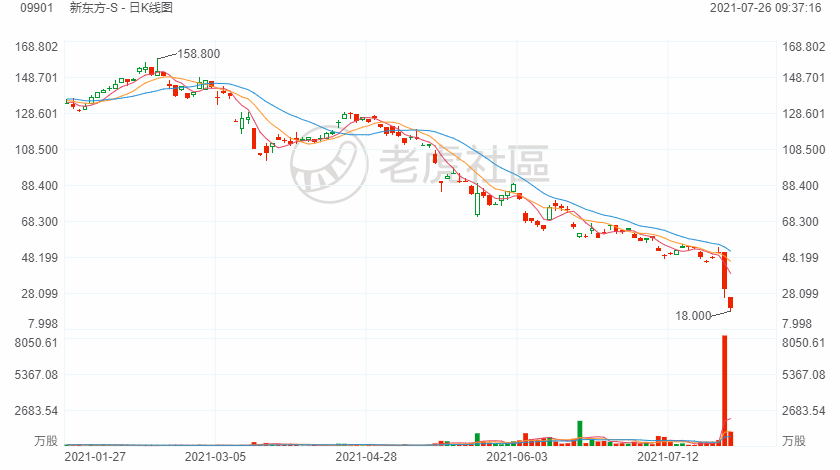 7月26日讯,港股教育板块集体跳水,思考乐教育跌45%,新东方跌近40%,卓越教育集团、新东方在线跌超25%。7月24日教育双减政策落地,关于严禁学科类培训机构资本化,中信证券认为,已上市的机构或面临退市或者剥离学科类业务的风险。