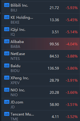 Chinese ADRs crashed in morning trading, with Bilibili falling nearly 6% and Alibaba falling over 4%.