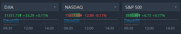 U.S. stocks mixed in morning trading. Both S&P500 and Dow Jones rose 0.17%, 0.11% separately, while Nasdaq slid 0.11%.