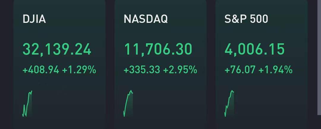 The S&P 500 was traded higher by 76.07 points, or 1.94%, at 4,006.15, while the Nasdaq Composite gained 335 points, or 2.95%, to 11,706.