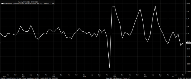 Additionally, used car prices in September, as measured by the Manheim Used Vehicle Index, fell 3% versus 4% in August. It may suggest that used car prices, although down in September, didn't fall as much as in August, and thus there may be less of a negative impact.
