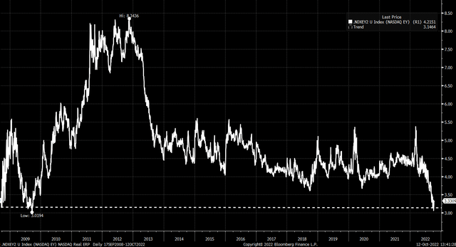 It also demonstrates that despite the NASDAQ plunging in 2022, it hasn't fallen nearly enough to keep pace with the rise in real yields. It means that the NASDAQ needs to fall even further.