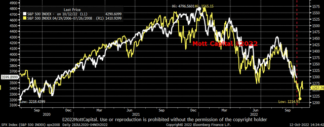 Additionally, as this bear market plays out versus previous cycles, there may still be a sharp decline for the equity market. Comparing the S&P 500 in 2022 with the 2008 bear market cycle suggests equities may see a further drop between now and the end of October.