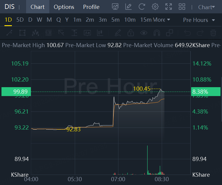 Walt Disney Co. reported fiscal second-quarter results that beat Wall Street estimates and raised its outlook for the full year, citing strong performances from theme parks and streaming TV. The shares jumped 8.4% in premarket trading after the report.