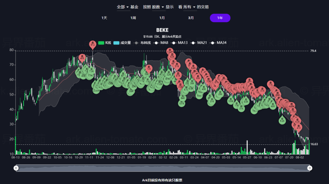 牛市女皇是站在孙正义那边的。ARK基金开始清仓中概股,拼多多、贝壳都被清仓,不过ARK在中概股方面的投资并不如人意,你看她对贝壳的操作,像不像韭菜?重仓特斯拉成名的Baillie Gifford,则逆势抄大底,重仓买入美团20亿港元。