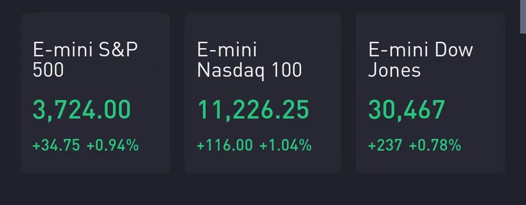 U.S. stock futures advanced on Tuesday. Nasdaq-100 futures surged 1%, S&P 500 futures rose 0.94%, and Dow futures jumped 0.78%.
