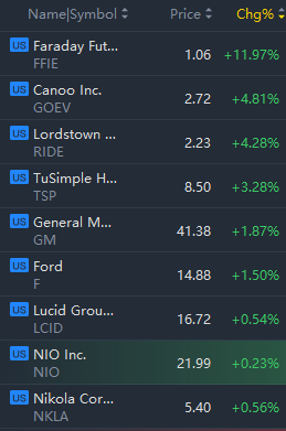EV stocks took off in morning trading, with Faraday Future Intelligent Electric Inc. soaring over 11% and Canoo Inc. rising nearly 5%.