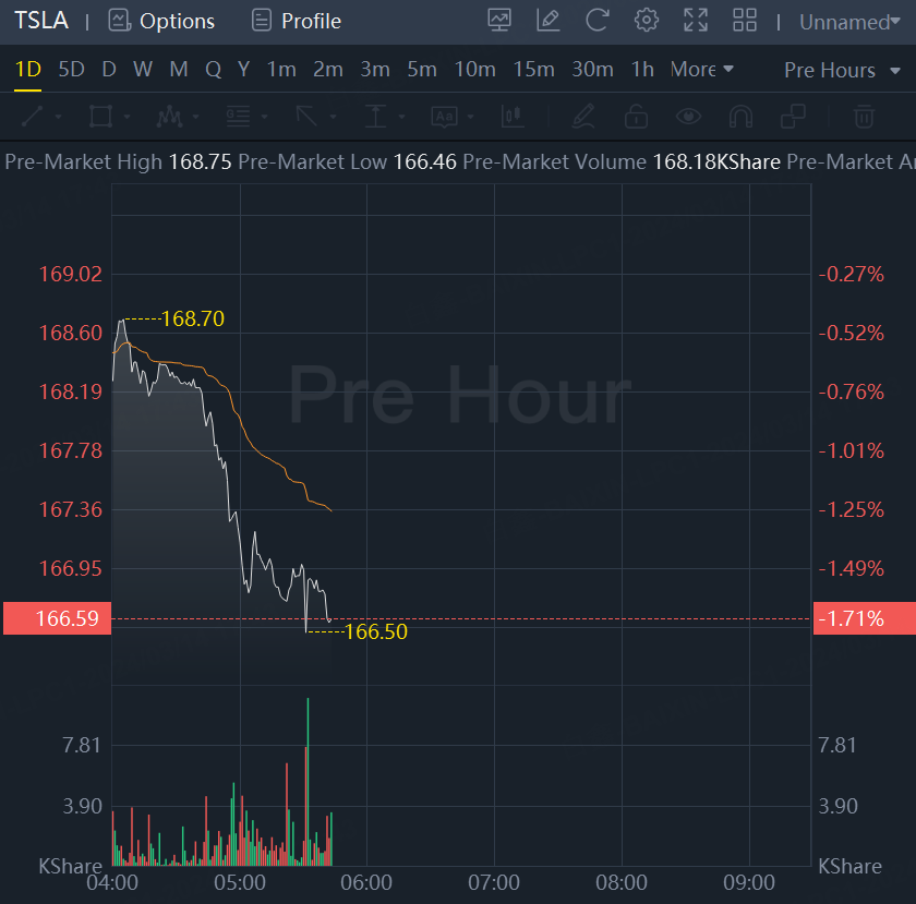 The revised price target implies about 3% downside from Wednesday’s close. The stock slipped 1.4% before the bell. Shares have struggled this year, falling nearly 32% as demand for electric vehicles dwindles.