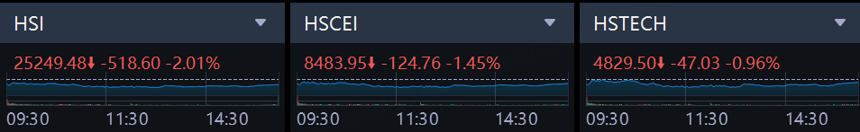 1. The three major Hong Kong gauges closed lower on renewed global risk aversion. The HSI fell 2.01% to 25,249.48, the HSCEI declined 1.45% to 8,483.95, and the HSTECH slipped 0.96% to 4,829.50. Turnover reached HKD 364.30 billion, indicating active de-risking as geopolitical headlines dominated the session. Intraday media reports pointed to a spike in global market volatility (U.S. “fear gauge” higher) and an Asia-wide rout on energy-shock concerns, while China’s manufacturing PMI remained in contraction, further tempering risk appetite.