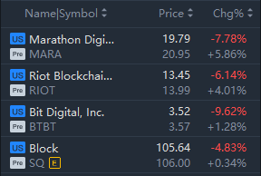 Crypto stocks rebounded in premarket trading, Marathon Digital and Riot Blockchain rose over 4%.