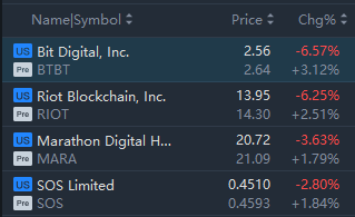 Crypto Stocks Rebounded in Premarket Trading,with Bit Digital and Riot Blockchain Rising Around 3%