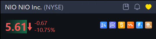 US-listed shares of NIO tumbled 10.8% in morning trading.
