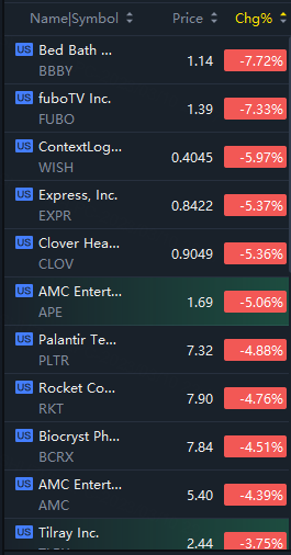 Meme stocks crashed in morning trading; Bed Bath & Beyond and fuboTV Inc. tumbled over 7%.