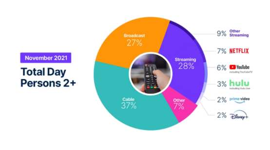 而在流媒体中,Disney+受益于该月有近20%的观影时间增长,市场份额较10月份上涨1%。