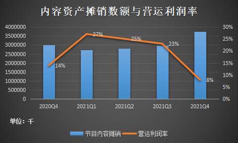 第四季度中,奈飞的营运利润率为8%,高于公司的预测指引6.5%,但相较前年同期的14%,仍有不少的差距。2021全年的营运利润率依然达到20.9%,位于公司此前的预期区间--20%以上。