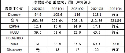 注:此为每季末的订阅用户数,Discovery+在2021年后才发行,因此之前的数据未进入统计