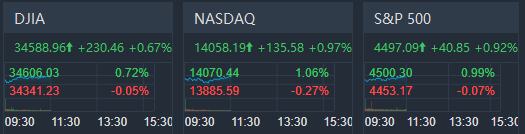 Nasdaq Index and S&P500 jumped nearly 1% while Dow Jones rose over 0.5%.