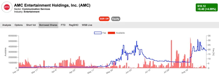 Notice that, during the first trading days of September, AMC borrow rates peaked several times, reaching nearly 30% — the highest levels this year so far. Rates are currently around 18%.