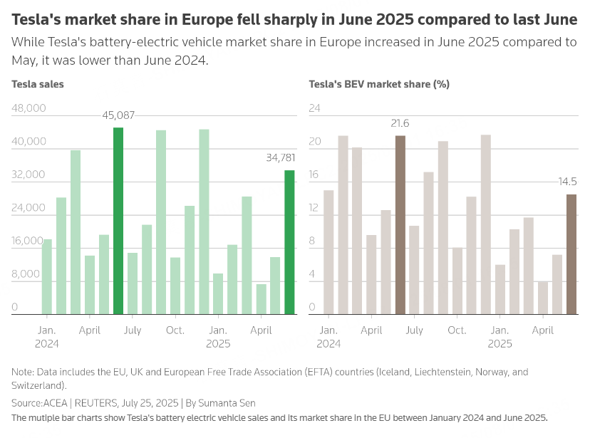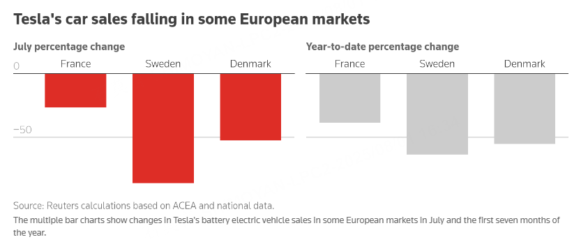 Model Y registrations in Sweden and Denmark fell by 88% and 49% respectively in July.