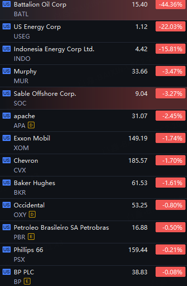 Some Oil Stocks Tumbled. Battalion Oil Down 44%; US Energy Down 22%; Indonesia Energy Down 16%.