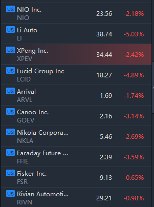 EV Stocks slipped in morning trading. Lucid, Rivian, Nio, Li Auto, Xpeng Motors, Polestar, Arrival and Lordstown fell between 1% and 5%.