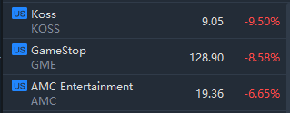 Meme stocks slid in morning trading, with Koss and Gamestop falling around 9%.
