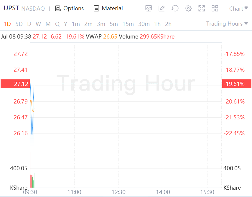 The lending company's second-quarter loss is now expected to be $27 million to $31 million, after executives previously guided for breakeven to a loss of $4 million. Analysts polled by FactSet still expected Upstart to produce a small profit of less than $1 million despite that guidance, a reduction from expectations of $24 million in profit before the guidance.
