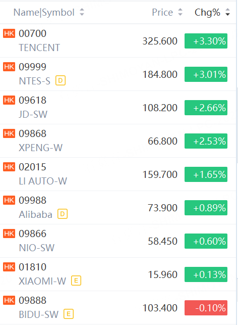 Limiting the gains, smartphone maker Xiaomi rose 0.13 per cent to HK$15.96 before its earnings release later on Monday.