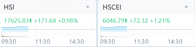The Hang Seng Index climbed 0.98 per cent to 17,625.83 just before 11am on Monday. The Hang Seng Tech Index also gained 1.21 per cent, while the Shanghai Composite Index retreated 0.2 per cent.
