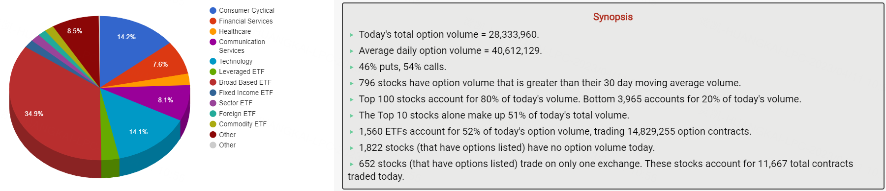 周一,期权市场总成交量达28,333,960张合约,其中,看涨期权占比54%。