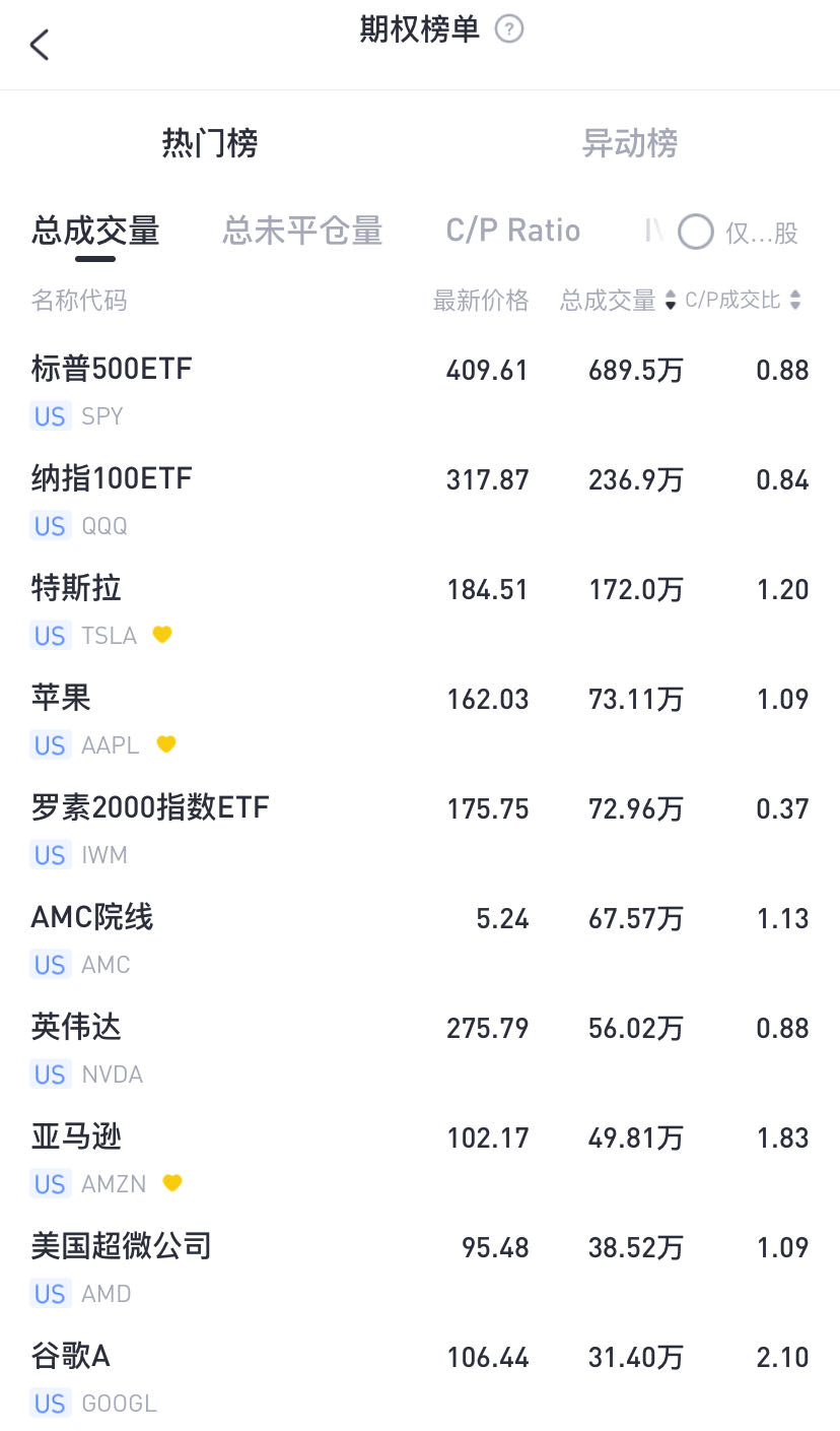 标普指数ETF-SPY期权成交689.5万张合约,其中,看跌期权占比53%。