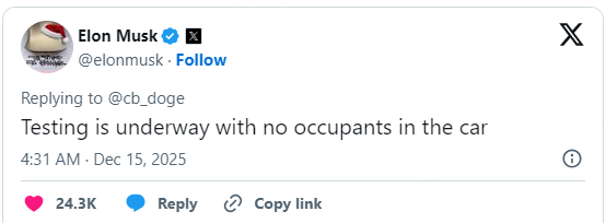However, the main focus of the Robotaxi program since its launch in the Summer was to remove Safety Monitors and initiate completely driverless rides. This effort is close to becoming a reality, and the efforts of the company are coming to fruition.