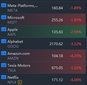 Apple, Tesla, Microsoft, Amazon, Netflix, Alphabet and Meta Platforms slid between 1% and 4%.