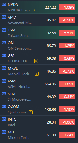 Semiconductor stocks tumbled in morning trading; TSMC shares slumping over 5%.