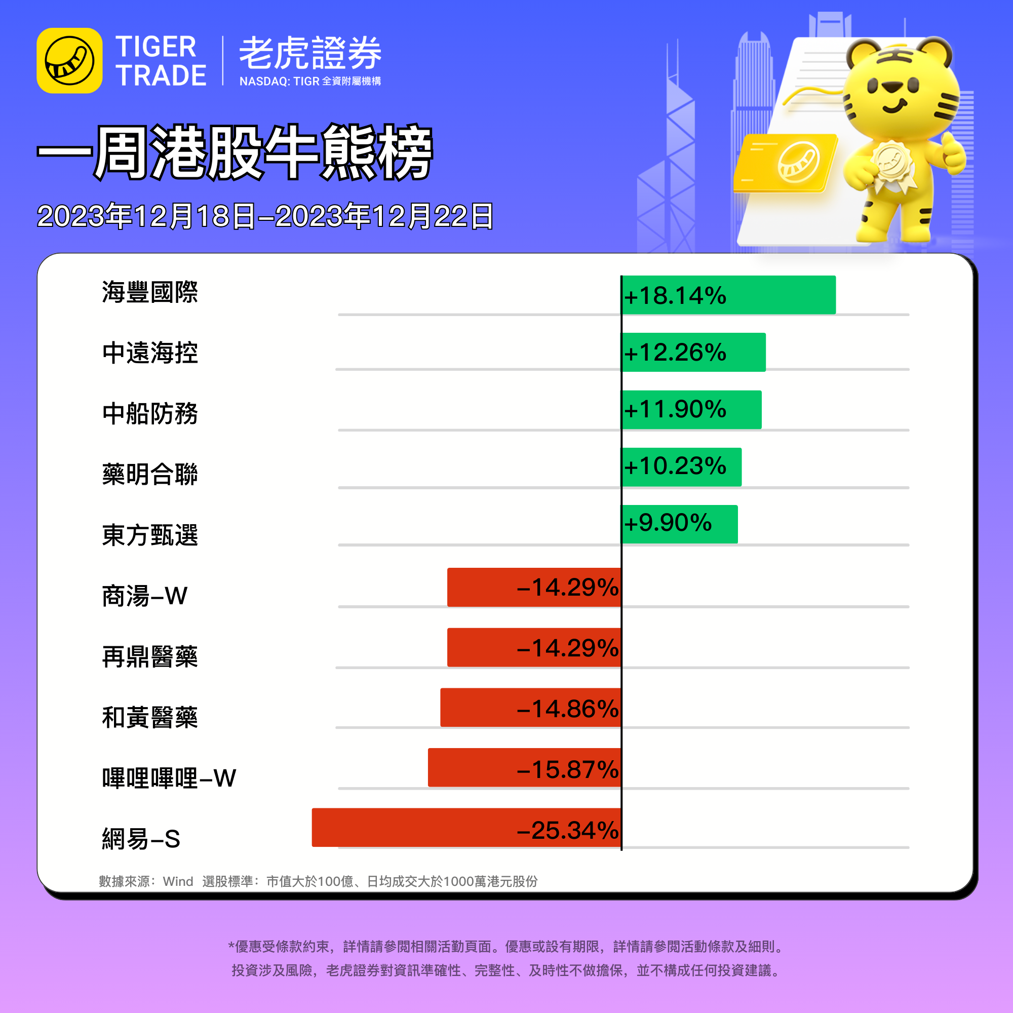 總結全周(12月18日-12月22日),恆生指數本週跌451點,科指跌232點。
