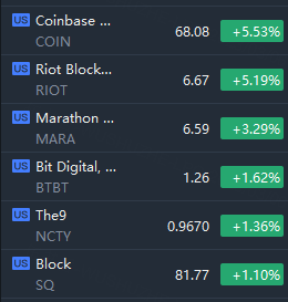 Crypto stocks took off in morning trading; Coinbase Global, Inc. and Riot Blockchain, Inc. jumped over 5%.