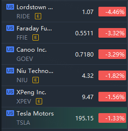 EV stocks remained low in morning trading; Lordstown Motors Corp. and Faraday Future Intelligent Electric Inc. slid over 3%.