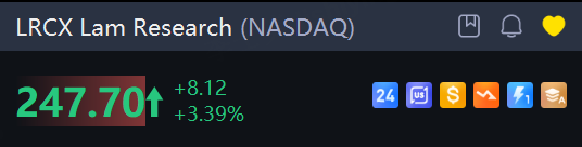 Lam Research forecast third-quarter revenue above Wall Street expectations, as enterprises ramped up orders of its chipmaking tools. Shares of the company rose 3% following the results.