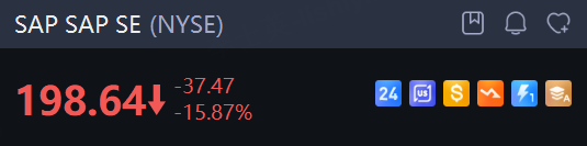 SAP shares fell 16% as current cloud backlog in the fourth quarter slipped to a level that Chief Executive Officer Christian Klein previously said would be a “disappointment.”